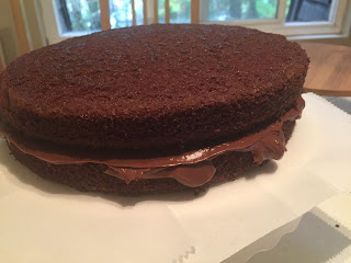- Chocolate cake , baked in two 9" pans.